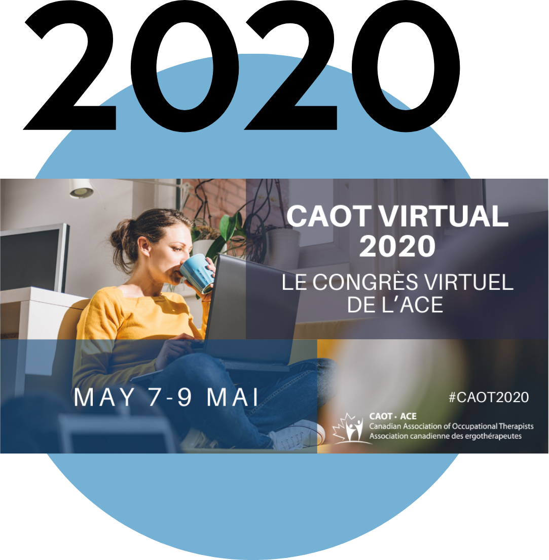 CAOT Virtual 2020, our first-ever digital Conference, took place in May with more than 535 delegates from Canada and around the world. Originally scheduled to take place in Saskatoon, Saskatchewan, CAOT’s team pivoted quickly when the COVID pandemic began in March. The digital event featured 104 live presenters, 20 pre-recorded sessions, and 29 posters.