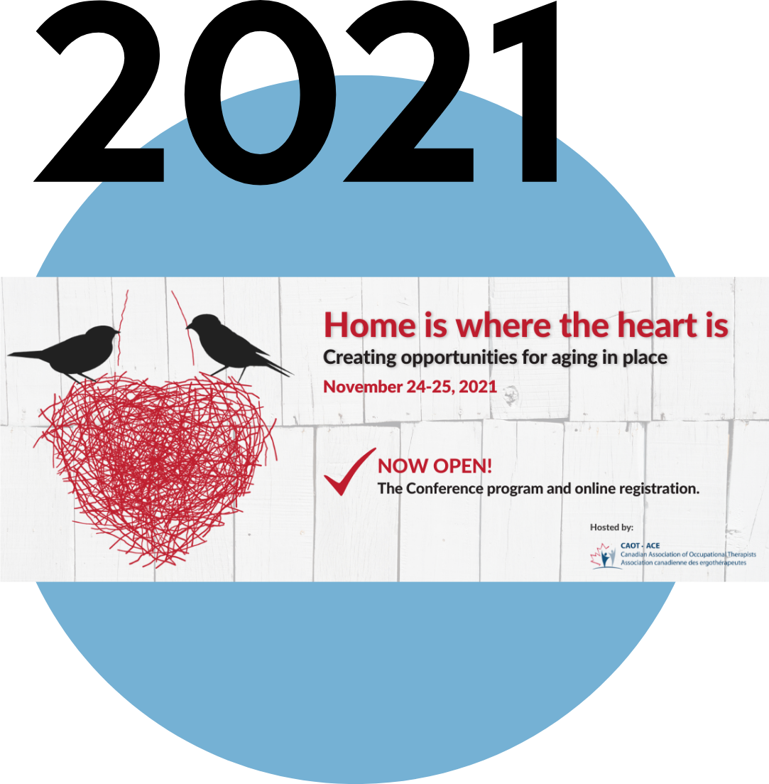 CAOT held a virtual multi-track, interdisciplinary conference, titled "Home is where the heart is: Creating opportunities for aging in place," that was co-constructed with older adults and featured keynote speaker Dr. Samir Sinha. More than 320 people attended the two-day event, which included 37 sessions for professionals, older adults, and care partners, with lived experience presentations, mini-workshops, and exhibitor sessions focused on maintaining independence, safety, and quality of life while aging at home.